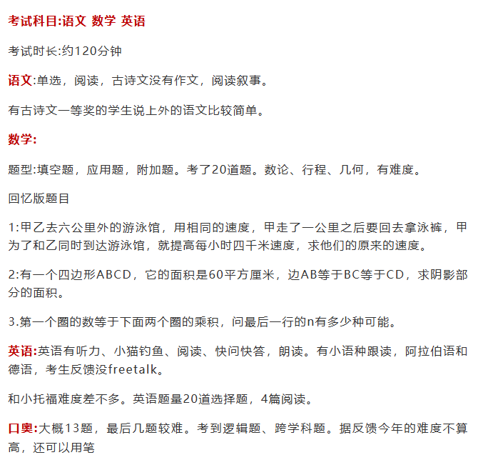 科创班与数学面试改革:新增2个多语种科创班,数学面试难度大幅提升,题目类型偏向奥数(如组合数学、几何证明),强调创新能力和实际应用。