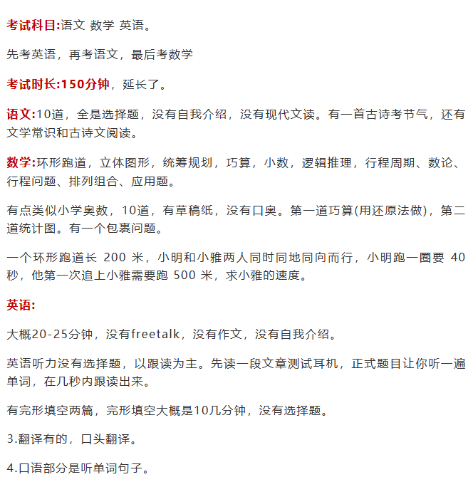 数学题量与难度调整:虽整体政策变化较小,但数学题量显著增加,侧重考查基础知识(如分数运算、行程问题)的熟练度和应用能力。