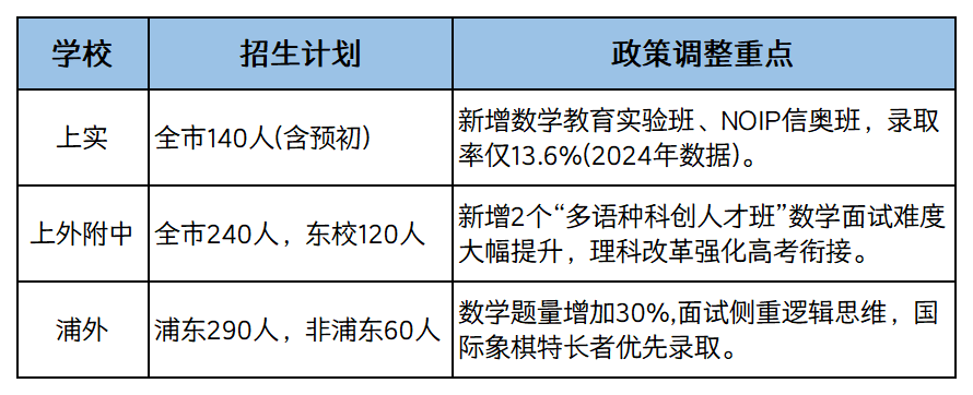 政策动态跟踪:关注各校招生变化(如上实新增信奥班、浦外扩招理科生),针对性调整备考侧重。